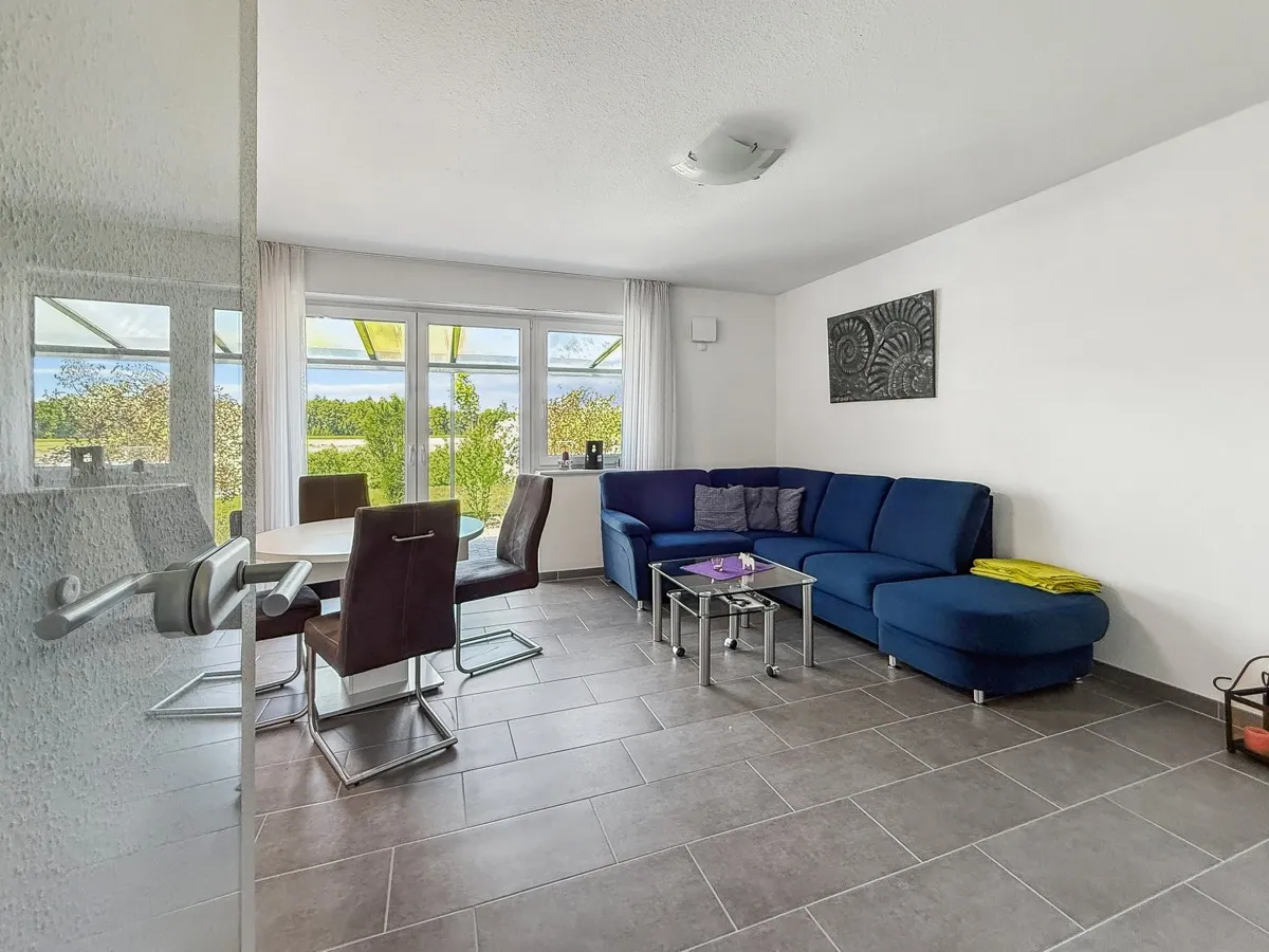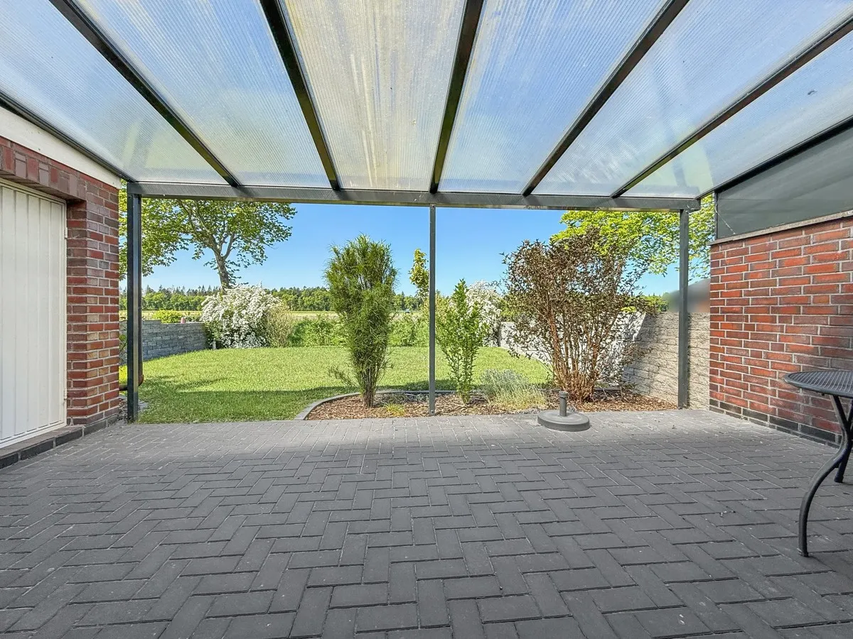 Im Haus erwartet Sie folgende Raumaufteilung: Diele, repräsentatives Wohn-und Esszimmer mit Ausgang zur überdachten Terrasse, offene Wohnküche mit moderner Einbauküche. Schlafzimmer, Badezimmer mit ebenerdiger Dusche, Kinder/Gästezimmer, Garage mit Sektionaltor. Die Wohnräume im Erdgeschoss befinden sich auf einer Ebene. Der Baustil ermöglicht Ihnen ein weitgehend barrierefreies Wohnen. Das Garten ist eingezäunt und wurde pflegeleicht angelegt.
