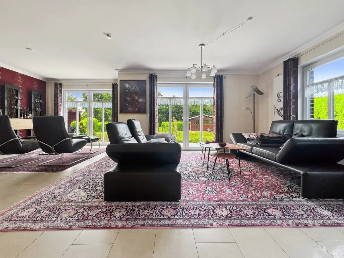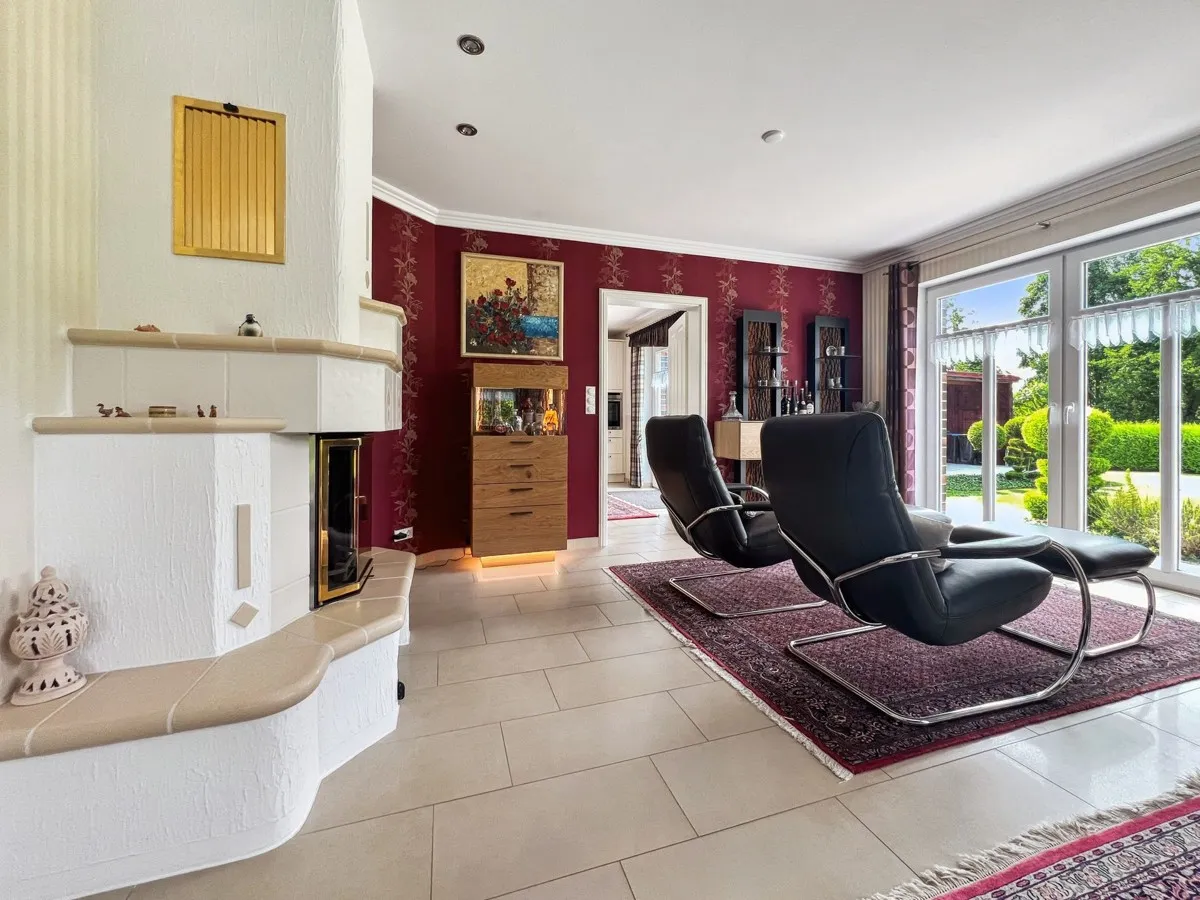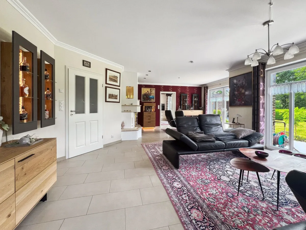 Besichtigen Sie mit uns diese beeindruckende Landhaus-Villa, die im Jahr 2010 auf einem traumhaften Grundstück von etwa 976 m² in herrlicher Lage direkt an einem Naturschutzgebiet errichtet wurde. Die exklusive Landhaus-Villa zeichnet sich durch eine aufwendige Architektur und edle Details aus. Die Kapitänsgiebel wurden komplett in Kupfer eingefasst. Der Klinker gehört zu den Besten in Norddeutschland. Die Wohnfläche erstreckt sich über zwei Ebenen, wobei das Erdgeschoss ein komplett ebenerdiges Wohnen ermöglicht. Zusätzlich bietet die Villa eine großzügige Garage mit Nebengebäuden, sowie ein Blockhaus im Garten.
