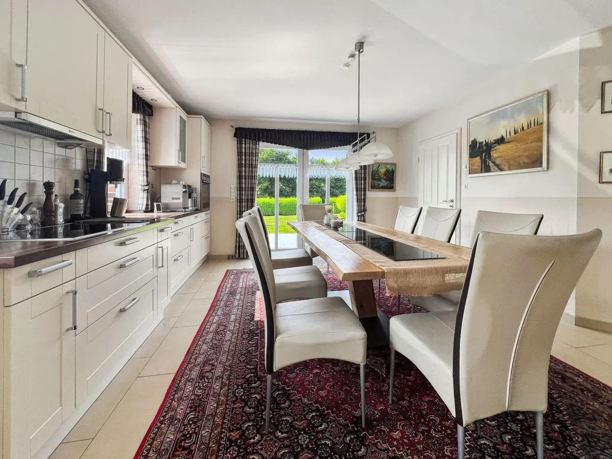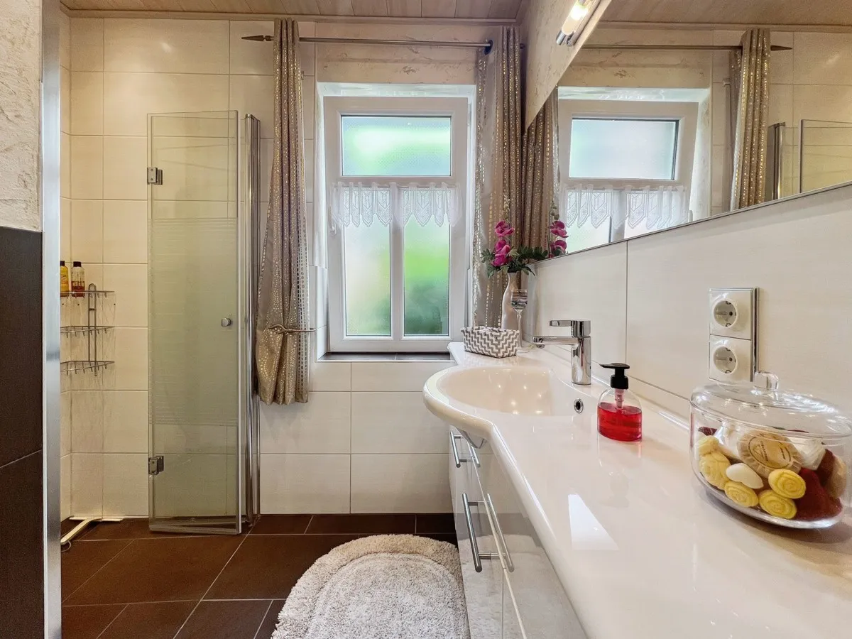 Sie betreten das Erdgeschosses über eine geräumige Diele. Das repräsentative Wohnzimmer mit einer gemütlichen Kaminecke (Kachelofen) bilden den Mittelpunkt der Immobilie. Die moderne Wohnküche verfügt über einen außergewöhnlichen Essbereich, sowie direkten Zugang zur großzügigen Süd-Terrasse und zum bezaubernden Garten, wo Sie die Natur in vollen Zügen genießen können. Ein Schlafzimmer, ein Badezimmer mit begehbarer Dusche und WC sowie ein Hauswirtschaftsraum vervollständigen das Erdgeschoss. Besonders erwähnenswert sind: Glasfaser (Internet), Fußbodenheizung, elektrische Rollläden, 6 Aussen-Kameras und das zentrale Staubsaugersystem im gesamten Haus.