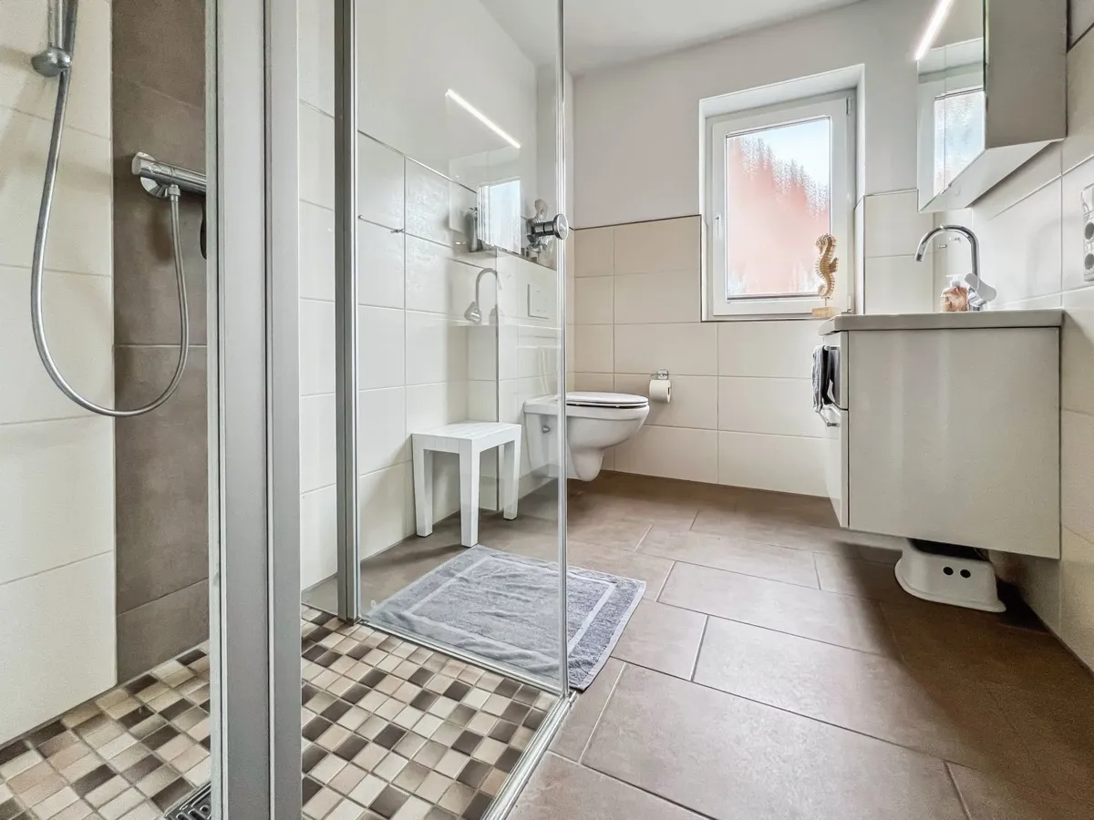 -begehbare Dusche mit Glas