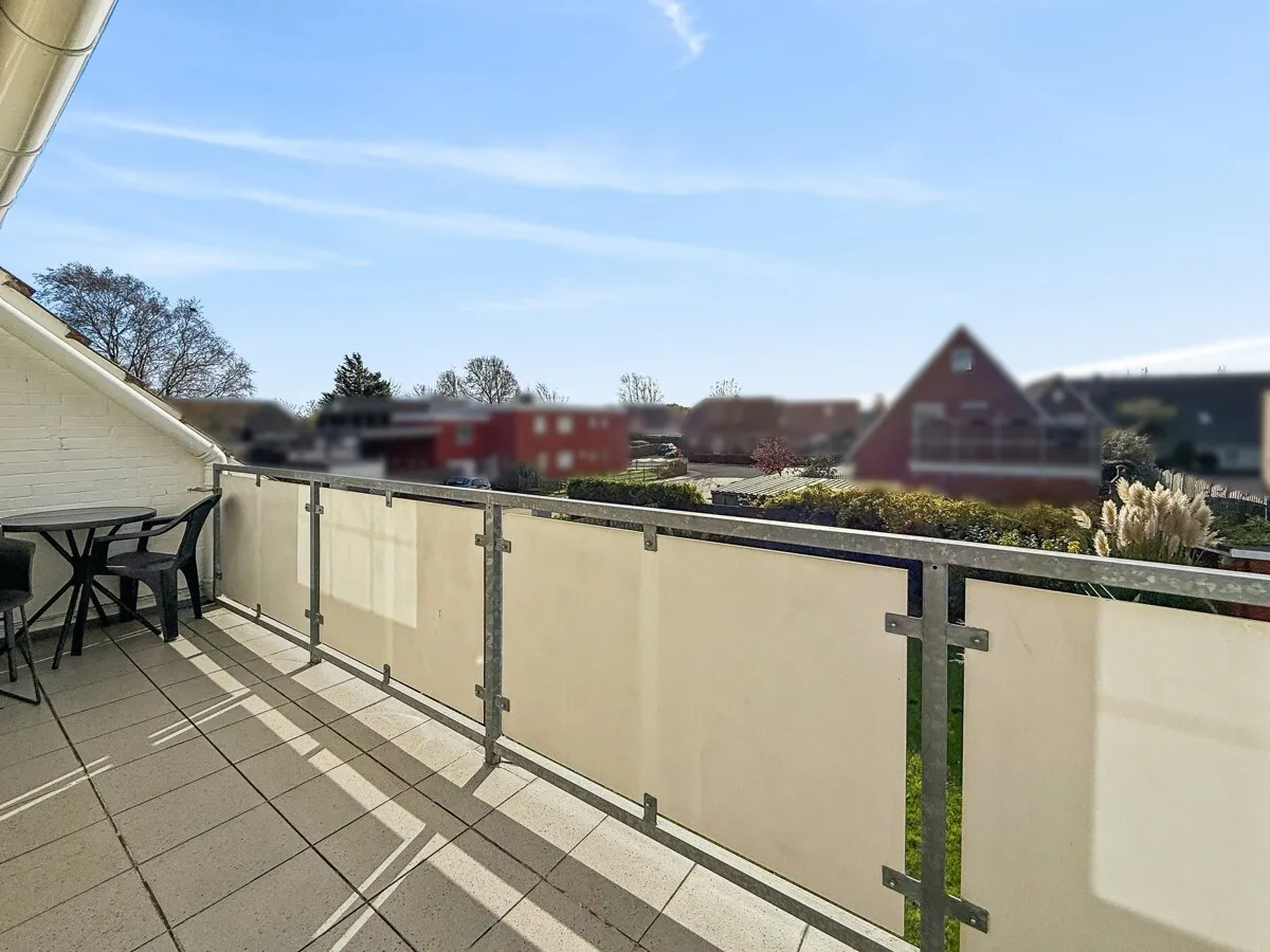 Die Ferienwohnung im Obergeschoss umfasst etwa 40 m² und überzeugt mit einem gemütlichen Wohn- und Essbereich samt offener Küche (ebenfalls mit Einbauküche), einem Schlafzimmer, einem Kinder- bzw. Gästezimmer sowie einem Badezimmer. Der sonnige Balkon mit Blick bis zum Ocean Wave sorgt für echtes Nordsee-Feeling.