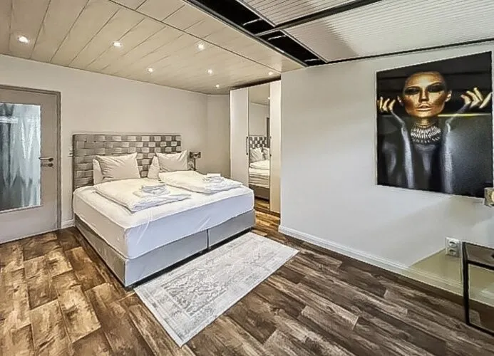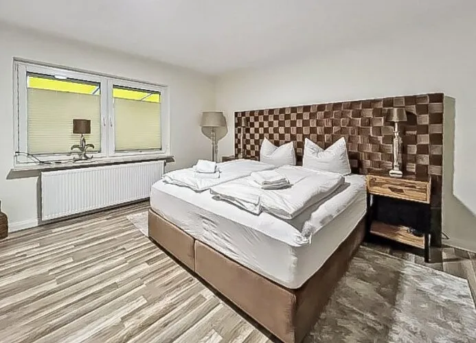 Für erholsame Nächte sorgen luxuriöse Boxspringbetten mit Matratzen in Hotelqualität, wie man sie auch in renommierten 5-Sterne-Häusern findet. Das Elternschlafzimmer bietet viel Platz, ergänzt durch ein Kinderzimmer und ein weiteres Zimmer.