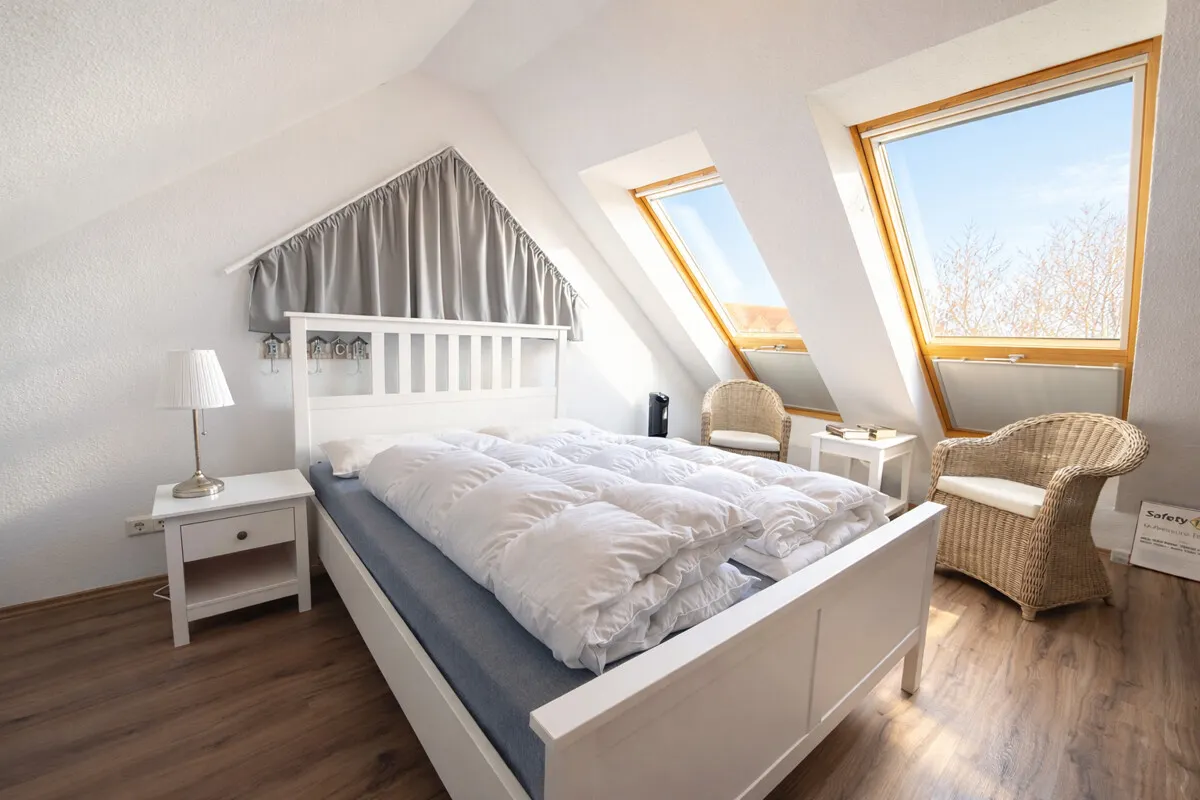 Ergänzt wird das Raumangebot durch einen praktischen Abstellraum im ausgebauten Spitzboden, der über eine Design-Treppe mit seitlicher LED Beleuchtung erreichbar ist und einen beeindruckenden Blick bis nach Norderney eröffnet – ein echtes Highlight mit maritimem Weitblick. Mobiliar und Inventar sind im Kaufpreis enthalten.