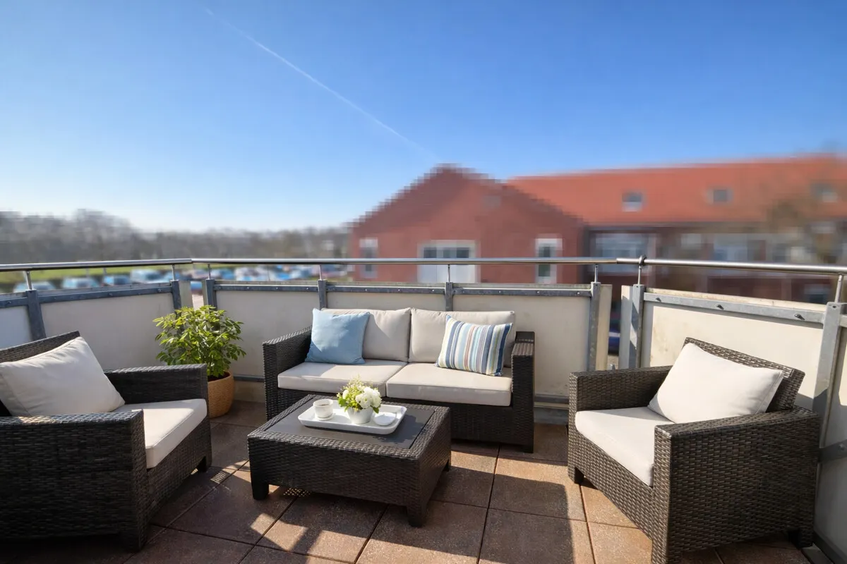 Der sonnige Balkon lädt zum Verweilen ein und bietet ideale Voraussetzungen, um die frische Nordseeluft in vollen Zügen zu genießen. Abgerundet wird das Angebot durch einen privaten PKW-Stellplatz. Zur Wohnung gehört auch noch ein Gartenhaus 3 x 3 m, in dem sich eine Infrarotsauna befindet sowie Gartenmöbel und eine Lademöglichkeit für Ebikes.
