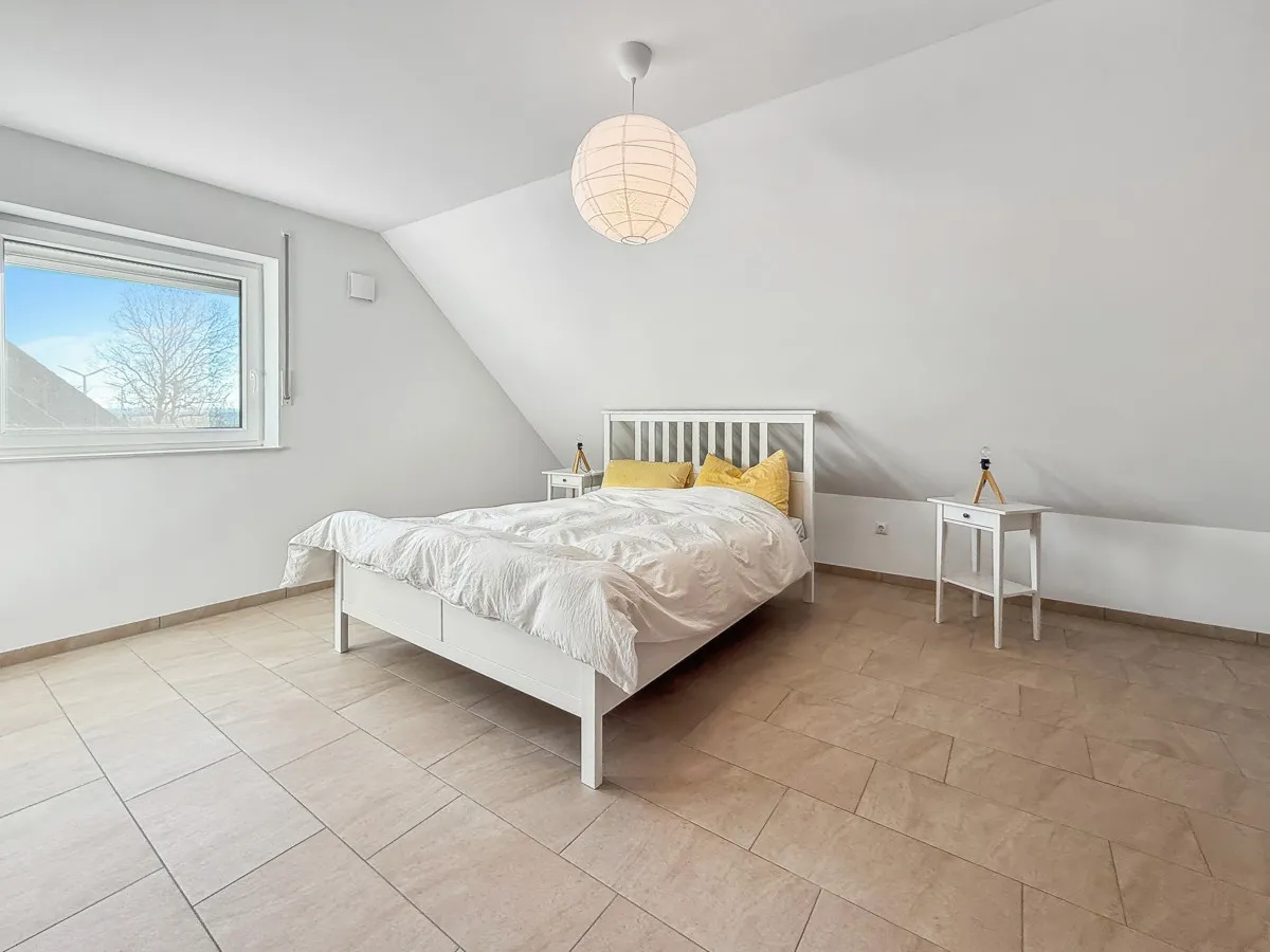 Aufteilung: EG: Diele, Abstellraum, Licht durchflutetes Wohn/Esszimmer mit offener Küche, Schlafzimmer, exklusives Badezimmer mit großer, bodentiefer Dusche, sonnige Terrasse und herrlich pflegeleichter Garten. Im 1.OG: Flur, Schlafzimmer, großzügiges Badezimmer mit begehbarer Dusche, schönes Kinder/Gästezimmer.