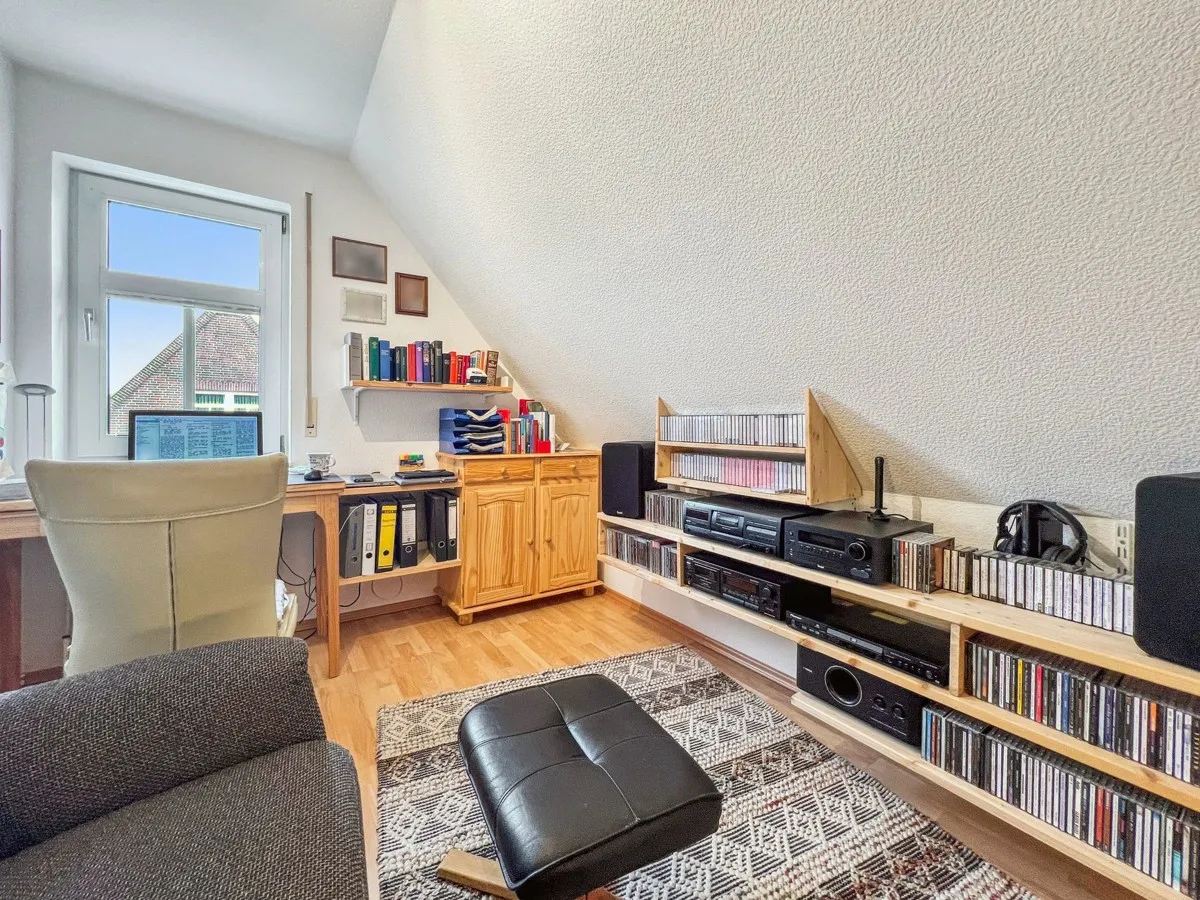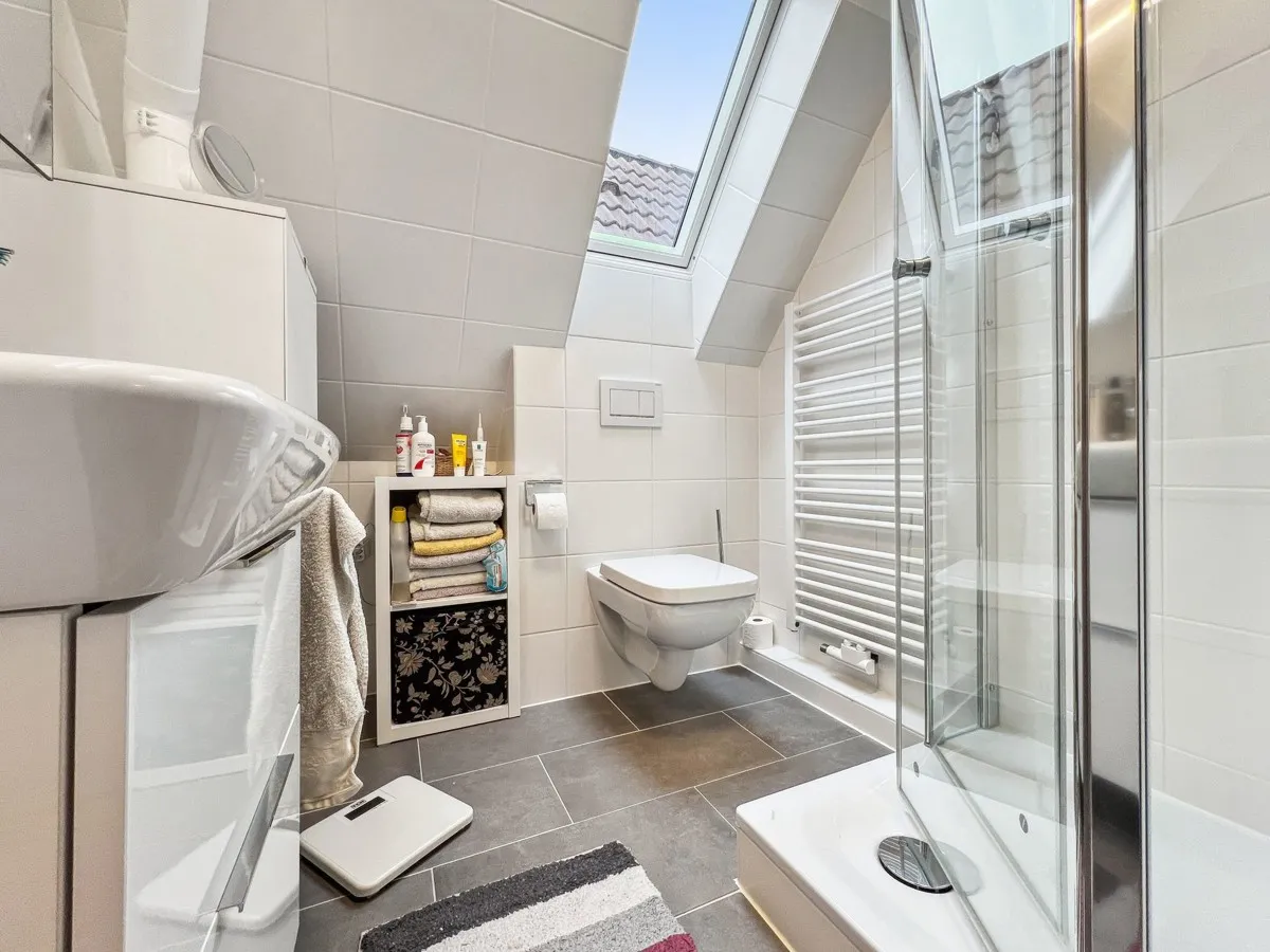 Die Terrasse hat ein hochwertiges Glasdach mit elektrischer Beschattung (Markise). Eine Treppe führt Sie vom Wohnbereich zum Obergeschoss. Hier finden Sie ein Schlafzimmer mit modernen Einbauschränken, ein helles Tageslichtbad mit flacher Dusche, WC und einem beheizbarem Handtuchalter, ein Büro sowie ein Kinder/Gästezimmer. Der Spitzboden ist gedämmt und dient als Abstellfläche. Ein Carport sowie ein massiver Außenabstellraum vervollständigen dieses attraktive Angebot. Vereinbaren Sie möglichst kurzfristig eine Besichtigung denn diese Immobilie wird nicht lange am Markt sein.
